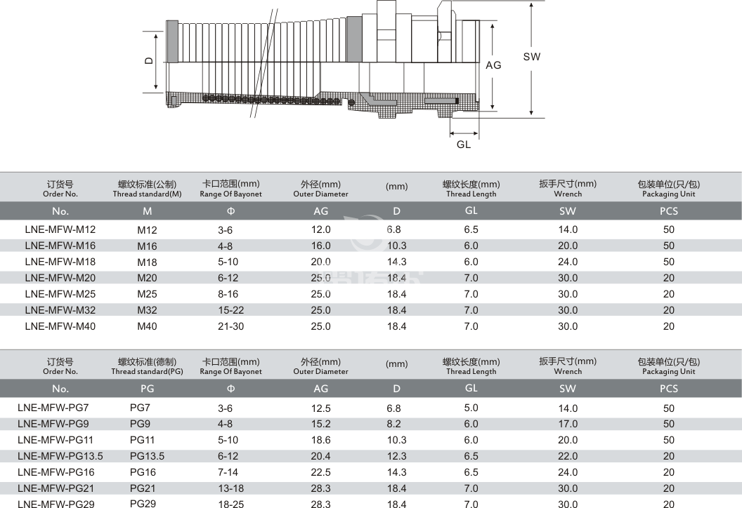螺牙规格:公制(M)、德制(PG)、英制(G)及美制(NPT)。