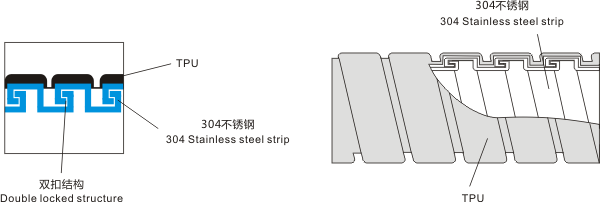 产品材质:(内层)采用304不锈钢带制成,(外层)采用TPU原料(低烟无卤、抗紫外线、防老化)。