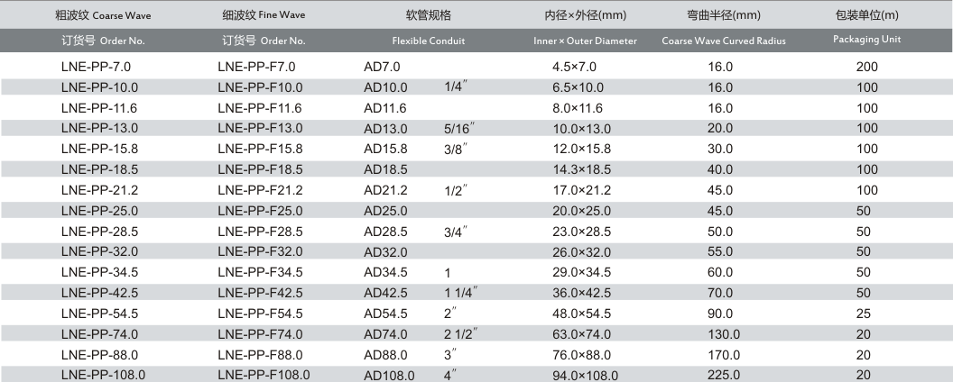产品名称:LNE-PP 阻燃聚丙烯软管