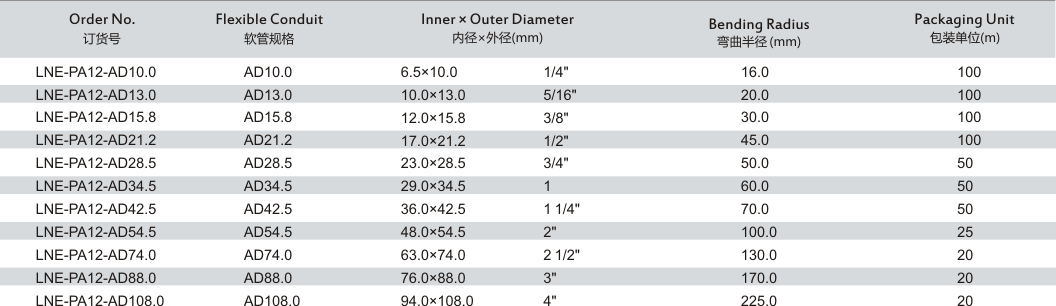 产品名称: LNE-12 标准尼龙12软管